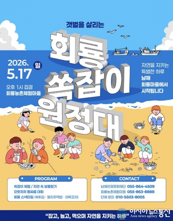 남해군, ‘회룡 쏙잡이 원정대’5월17일 개최회룡 쏙잡이 원정대./사진제공=남해군청 [아시아뉴스통신=장희연 기자] 남해..