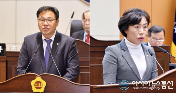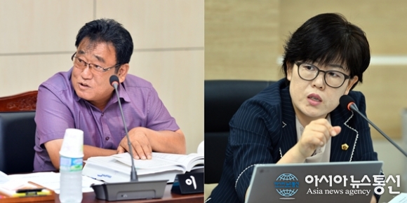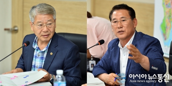 | 지난 1일 세종시의회 산업건설위원장으로 뽑힌 안찬영 의원(왼쪽)과 행정복지위원장으로 선출된 김복렬 의원.(사진제공=세종시의회) |