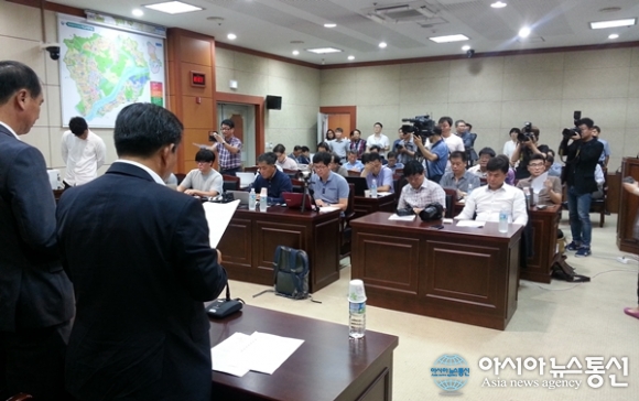 | 5일 오전 세종시의회 3층 회의실에서 열린 새누리당 기자회견 현장에 많은 기자들이 취재를 하고 있다./아시아뉴스통신=홍근진 기자 |
