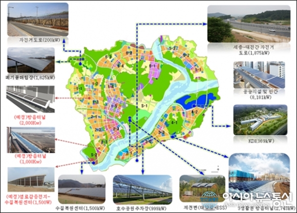 이를 위해 건설청은 지난 3월에는 고운동 자전거도로 위에 태양광 발전시설을 설치하는 등 세종시 신도시에는 자전거도로, 방음터널, 주차장 등 다양한 도시시설물을 활용해 태양광 발전시설을 설치하고 있다.