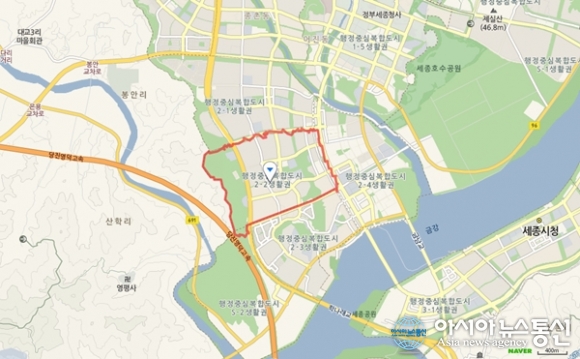 | 행복도시건설청이 29일 아파트 단지내 미술작품을 공모한다고 발표한 세종시 2-2생활권 새롬동 위치도.(사진출처=네이버지도) |