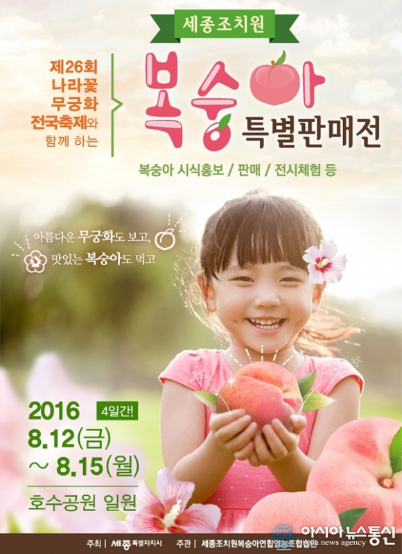 세종시가12일부터 15일까지 세종호수공원 일원에서 무궁화축제와 병행해 조치원복숭아 특판 행사를 갖는다.