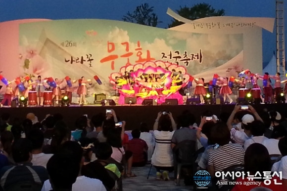| 15일 세종시 호수공원 특설무대에서 4일간의 일정을 마감하는 ‘제26회 나라꽃 무궁화 전국축제’ 폐막식에서 대전 천문대 어린이합창단이 공연을 하고 있다./아시아뉴스통신=홍근진 기자 |