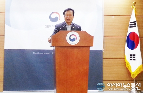 | 24일 정부세종청사 6동 브리핑룸에서 세종시 신도시 건설 관련 충청권 기자단 설명회를 하고 있는 이충재 행복도시건설청장./아시아뉴스통신=홍근진 기자 |