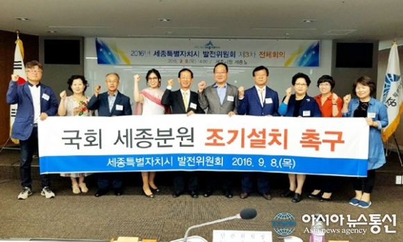 세종시 발전위원회가 8일 시청 대회의실에서 2016년 제3차 전체회의를 개최하고 국회 세종분원 조기설치 촉구 결의안을 채택했다.