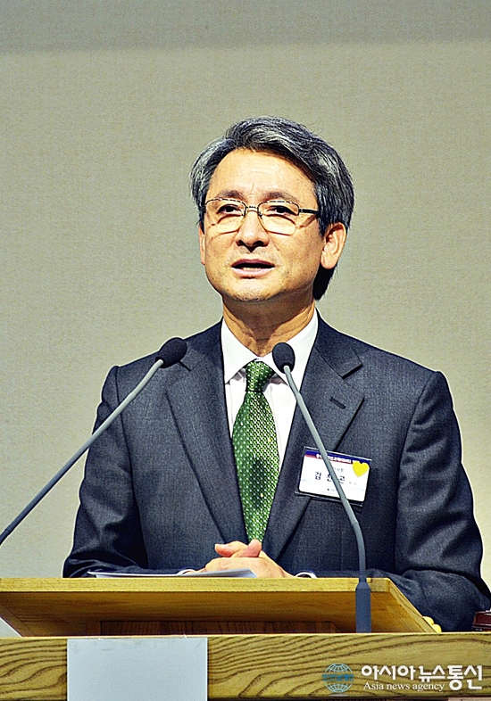| 김찬곤 신임이사장이 취임소감을 전하고 있다./아시아뉴스통신=오종영 기자 |