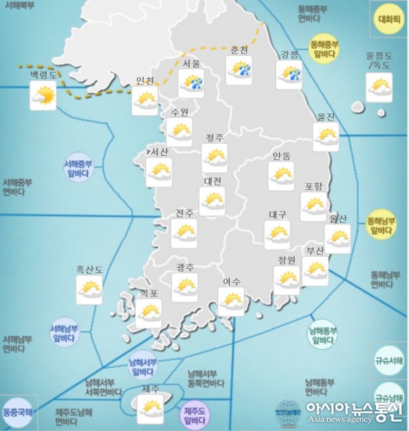 아침 최저기온은 대전·보령 20도, 세종·천안·서산·홍성 18도 등 17도에서 20도로 어제보다 조금 높겠고 낮 최고기온은 대전·세종·홍성 28도, 천안·서산·보령 27도 등 27도에서 29도로 어제보다 조금 낮을 것으로 보인다.