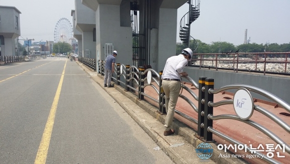 | 13일충남 삽교호 배수갑문 안전점검 모습.(사진제공=한국농어촌공사 충남본부) |