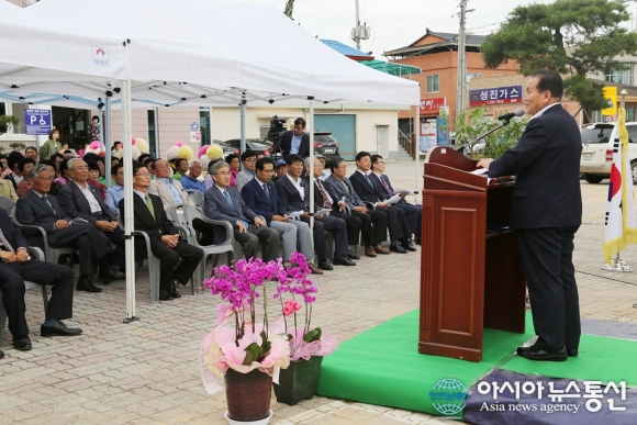 | 19일 오후 이정백 경북 상주시장이 사벌면사무소 전정에서 열린 '사벌면지 출판기념회'에 참석해 축사를 하고 있다./아시아뉴스통신=김철희 기자 |
