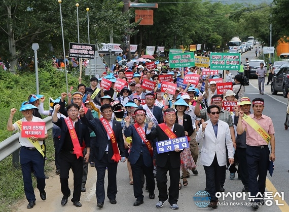 | 지난해 괴산군 청천면 환경문화축제 때 행사 참가자들이 문장대온천개발저지 궐기대회를 갖고 있다./아시아뉴스통신DB |