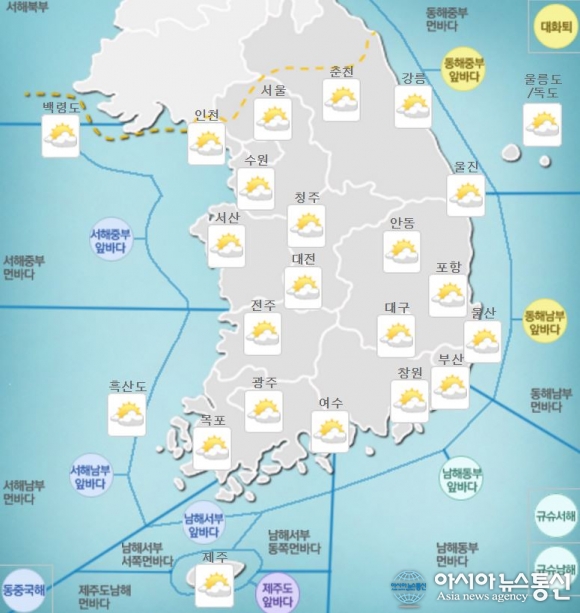 기상청은 "새벽부터 아침 사이에 내륙에는 안개가 끼는 곳이 있겠으니 교통안전에 유의해달라"고 당부했다.