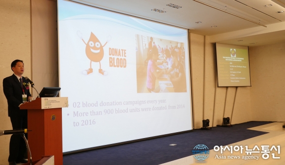 | 12일 대구 인터불고 호텔 카멜리아홀에서 열린 아시아 대학 총장 포럼에서 베트남 타이응웬경제경영대의 응웬 칸 도안 부총장이 주제발표를 하고 있다.(사진제공=대구대) |