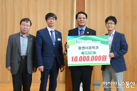 학교측에 따르면 이날 중국경제통상학과 오대원, 정명기, 정상은 교수가 장학기금으로 1000만원을, 광센서공학과 임천석, 남충희, 손대락, 장수, 조재흥 교수가 총 1000만원을 기탁했다.