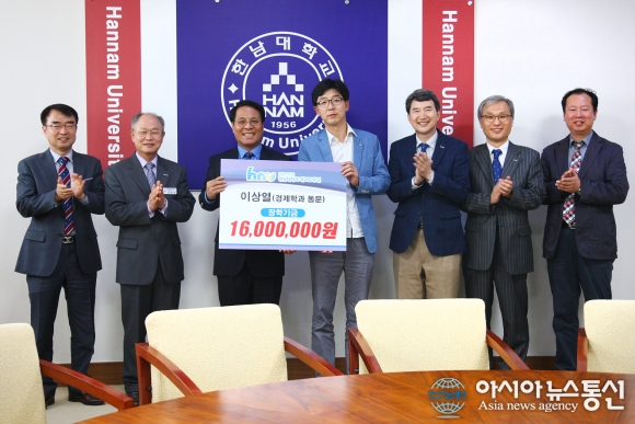 또 경제학과 동문인 이상열 ㈜유엔약품 대표가 이덕훈 한남대 총장을 방문해 1600만원의 장학기금을 전달했다.