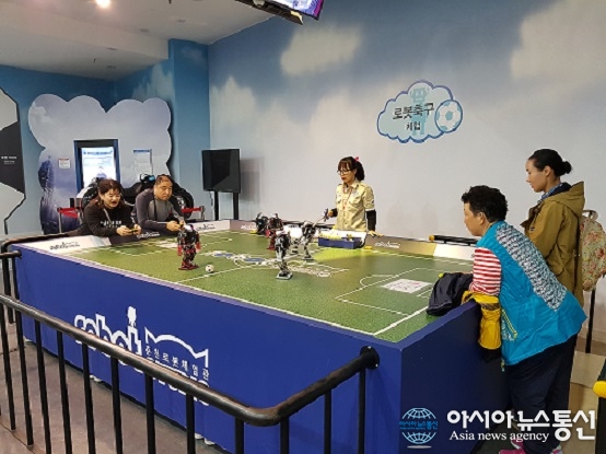 | 로봇관을 찾은 참가자들은 로봇 축구 게임을 즐기고 있다.(사진제공=경기도청) |