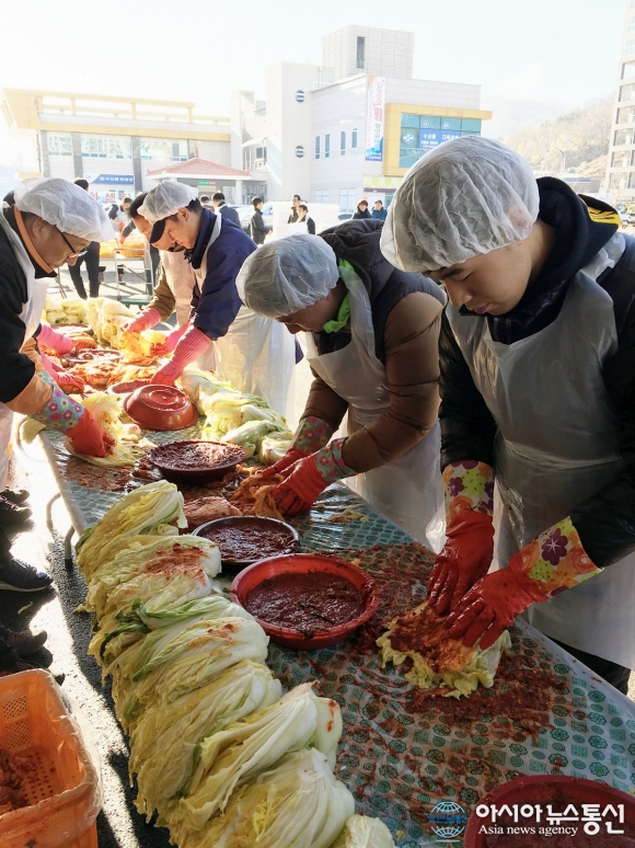 진해수협(조합장 노동진)이 연말을 맞아 사랑과 정을 나누고자 마련한 이날 행사는 노동진 조합장과 부인 이연화 여사, 수협 전 직원 등 80여명이 참여한 가운데 배추 1500포기로 김장을 담갔다.