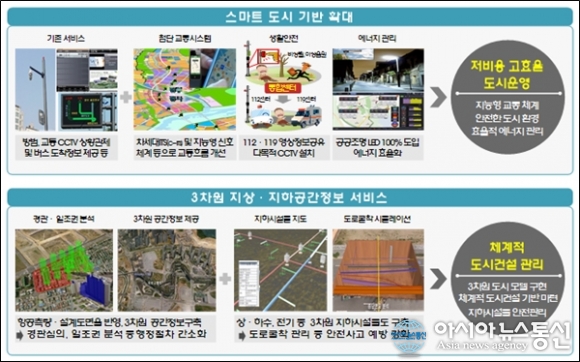 특히 오는 2030년까지 스마트서비스(15종 1558억), 제로에너지타운(약 3355억), 공동구(2415억), LED조명(1176억), 3차원 공간정보(약 50억) 등을 합쳐 약 1.4조원을 단계적으로 투입할 계획이다.