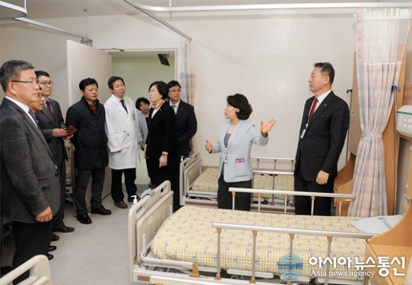 | 간호간병 통합서비스 병동 투어 중인 내.외빈.(사진제공=단국대천안병원) |