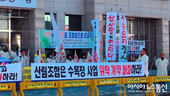 그러나 투쟁위는 “‘위탁사업 계약을 철회하면 산림조합이 문 닫을 수 있다’는 조합장의 말은 계약을 파기하지 않겠다는 것과 마찬가지다. 앞으로 투쟁위는 산림조합이든 산림청이든 계약을 철회할 때까지 집회 및 항의방문을 이어갈 것이다”고 강조했다.