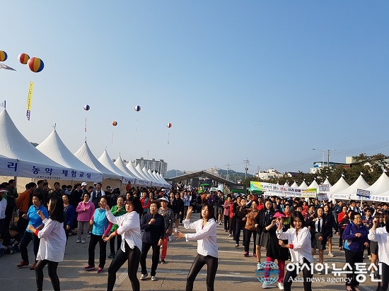 | 지난 10월14일 충북 영동군이 청소년 관련 유관기관과 합동으로 영동난계국악축제 행사장에서 청소년을 응원하고 학교폭력예방을 홍보하는 플래시몹을 펼치고 있다./아시아뉴스통신DB |