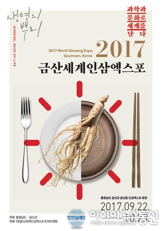 금산세계인삼엑스포조직위원회(이하 조직위)는 내년 9월 22일부터 10월 23일까지 금산 인삼엑스포광장에서 개최되는 '2017금산세계인삼엑스포' 공식포스터를 확정했다고 29일 밝혔다.