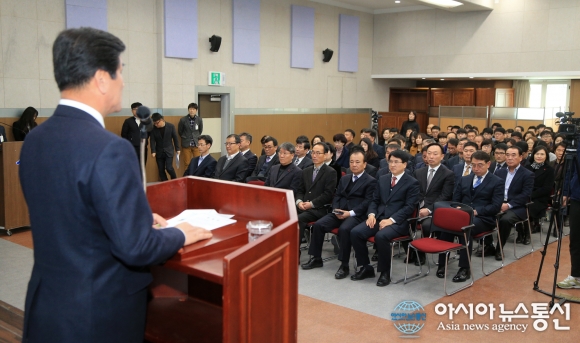 | 2일 산청군청 대회의실에서 ‘2017년 시무식’이 열리고 있다.(사진제공=산청군청) |