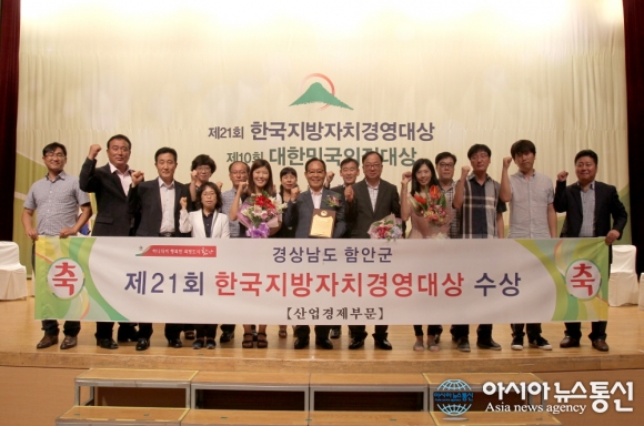 | 지난해 8월 한국지방자치경영대상 산업경제부문 대상 수상 모습.(사진제공=함안군청) |