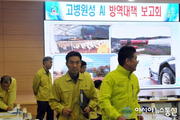| 천안시 공무원들이 AI 사태에 맞서 대책회의하는 모습./아시아뉴스통신=김형태 기자 |