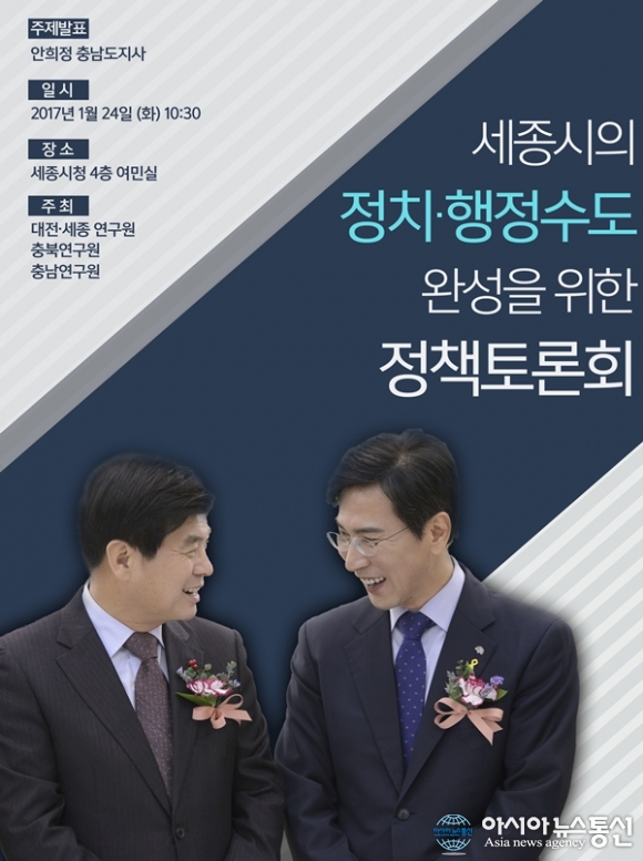 세종시가 오는 24일 오전 10시 30분 시청 4층 여민실에서 안희정 충남도지사가 주제발표에 나서는 정책토론회를 연다.