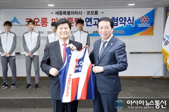 세종시는 1일 시청에서 육상 명가 코오롱 마라톤팀과 연고지 협약식을 가졌다.