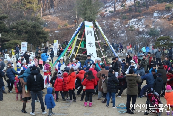| 11일 세종시 장군면 영평사에서 500여명의 신도와 시민들이 참석한 가운데 정월 대보름 맞이 달집태우기 행사가 열려 참석자들이 팀별로 줄다리기를 하고 있다. 이긴팀에게는 영평사에서 생산한 청국장 한 덩어리씩을 선물로 나눠 줬다./아시아뉴스통신=홍근진 기자 |