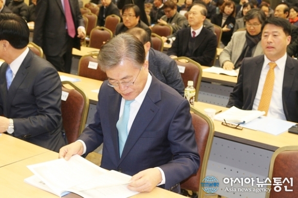 | 14일 정부세종컨벤션센터 국제회의장에서 열린 국가균형발전선언 13주년 기념 학술 심포지엄 행사에 참석한 문재인 더민주당 전 대표가 행사자료를 살펴보고 있다./아시아뉴스통신=홍근진 기자 |