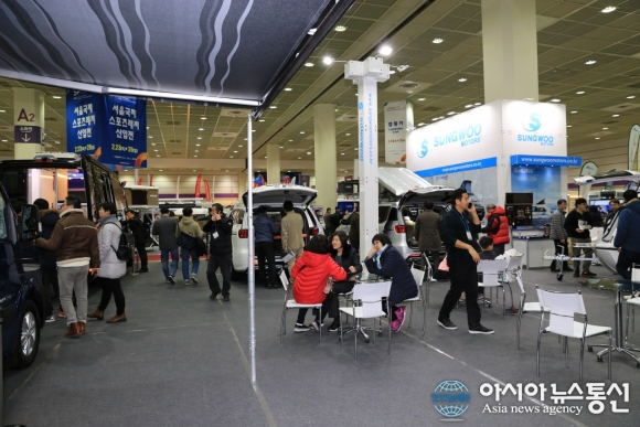 | 'spoex 2017' 개막식날 캠핑카와 캐라반 홍보 부스에서 관람객들의 관심이 무척 뜨겁다./아시아뉴스통신=이석호 기자 |