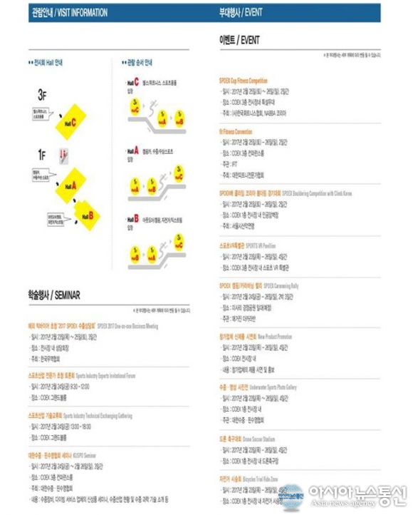 | 'spoex 2017' 관람안내 및 부대행사 일정표.(사진제공=국민체육진흥공단) |