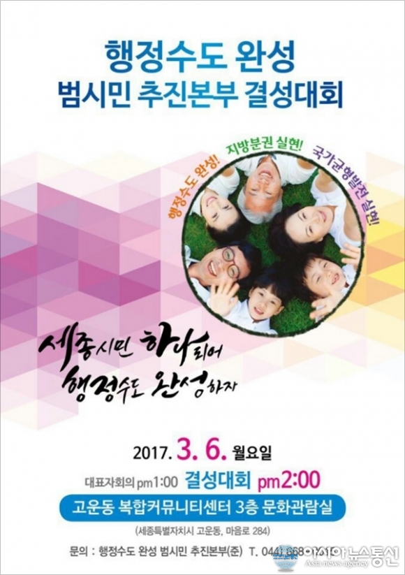 | 오는 6일 세종시에서 열리는 행정수도 완성 범시민 추진본부 결성대회 포스터.(사진출처=SNS화면캡쳐) |