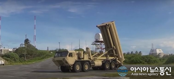 | 괌 미군기지에 배치된 사드 포대.(사진출처=국방부 자료화면 캡쳐) |
