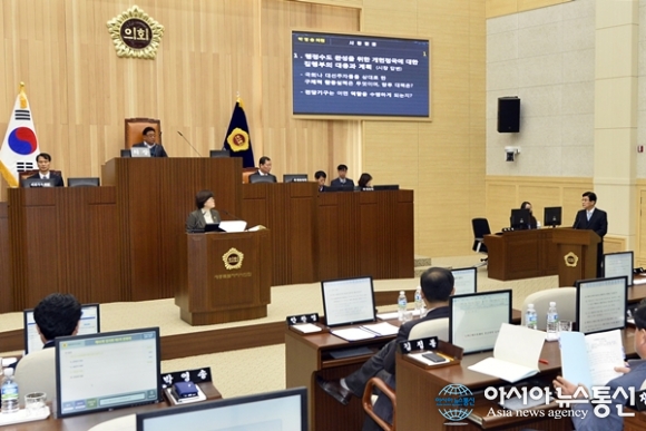 | 7일 박영송 세종시의원이 세종시의회 제42회 임시회 제2차 본회의에서 시정질문을 통해 행정수도 완성을 위한 이춘희 시장의 견해와 구상에 대해 질문하고 적극적인 노력을 당부했다.(사진제공=세종시의회) |