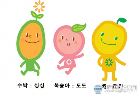 세종시는 이날 공동상표 ‘싱싱세종’ 외에도 싱싱한 열매들을 싱그럽고 친근한 캐릭터로 만든 수박, 복숭아, 배 브랜드 캐릭터 ‘싱싱’, ‘도도’, ‘리리’도 선보였다.