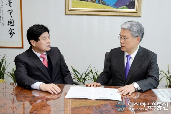 | 이춘희 세종시장이 9일 오후 국회 개헌특위 김동철 국민의당 의원을 만나 개헌안에 ‘행정수도=세종시’를 명시해달라고 요청하고 있다.(사진제공=세종시청) |
