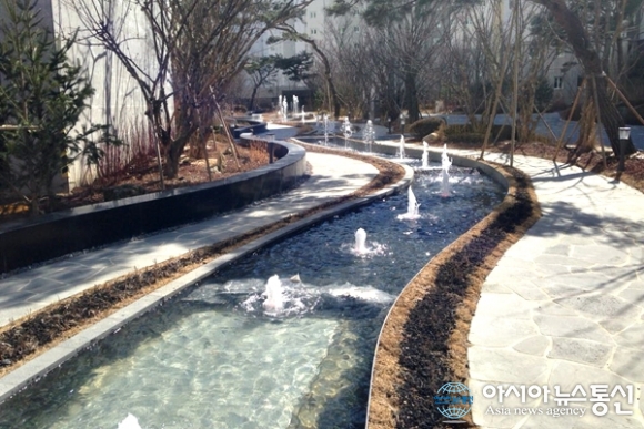 | 행복도시건설청(이충재 청장)이 15일 다음달 입주를 앞둔 세종시 새롬동 11개 단지 7481세대의 아파트에 대한 민관합동 총괄점검을 완료했다고 밝힌 가운데 한 단지내에 설치된 가로 1.8m 길이 110m의 산책로를 갖춘 ‘미니 개울’이 눈길을 끌고 있다.(사진제공=행복도시건설청) |