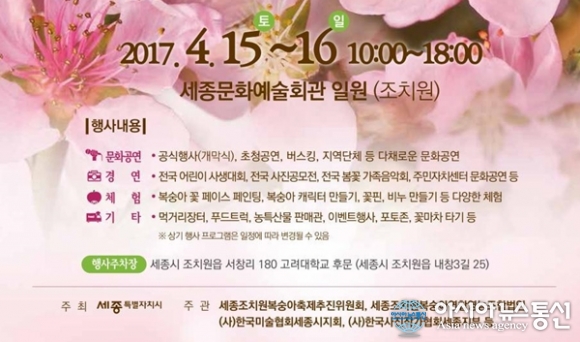한편 16일에는 ‘제15회 세종시 복사꽃 전국 마라톤대회’가 축제와 연계해 세종시민체육관과 고복자연공원 구간에서 세종시육상경기연맹 주관으로 열린다.