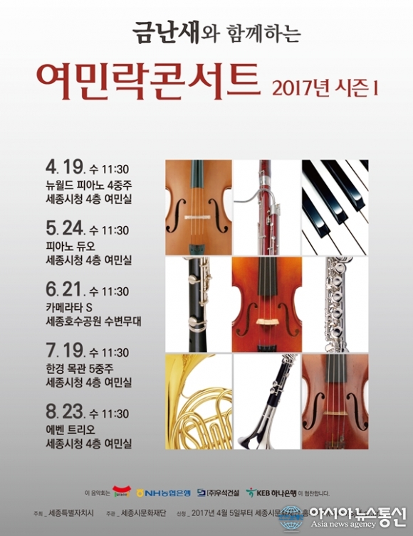 | 다음달부터 오는 8월까지 매월 공연키로 한 ‘여민락콘서트 시즌1’ 포스터.(사진제공=세종시문화재단) |