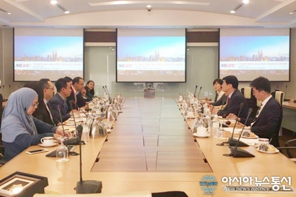 | 지난 24일 말레이시아 푸트라자야를 방문해 관리청 관계자들과 회의를 하고 있는 이춘희 세종시장 일행.(사진출처=SNS) |