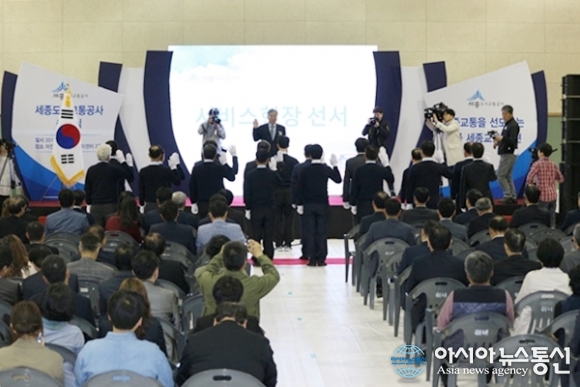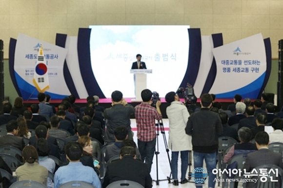 국내 최초 버스중심 공기업인 세종시 도시교통공사가 13일 어진동 복합커뮤니티센터에서 출범식을 가졌다.