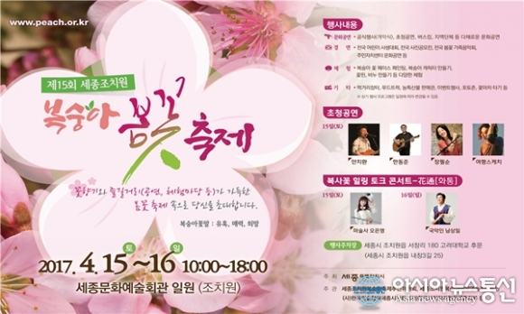 | 15일 개막 팡파르를 울리는 제15회 세종시 조치원 복숭아 봄꽃 축제 홍보 포스터.(사진제공=세종시청) |