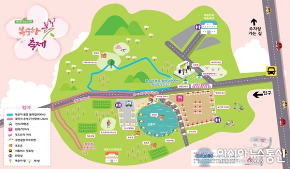 | 15일 팡파르를 울리는 제15회 세종시 조치원 복숭아 봄꽃 축제 행사장 배치도.(사진제공=세종시청) |