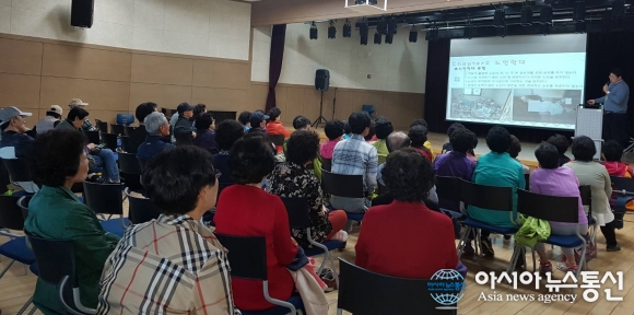 | 17일 창원시설공단이 의창노인복지관 강당에서 노인들을 대상으로 ‘노인 학대예방?인권증진 교육’을 시행하고 있다.(사진제공=창원시설공단) |