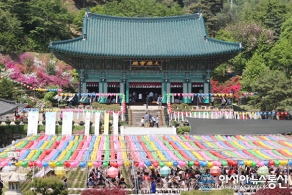 | 3일 불기 2561년 부처님 오신날을 맞아 세종시 장군면에 있는 영평사 대웅보전 앞마당에 걸려 있는 연등이 그늘막을 만들어 주며 장관을 이루고 있다./아시아뉴스통신=홍근진 기자 |