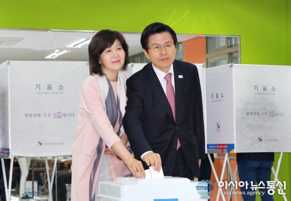 황교안 대통령 권한대행이 9일 오전 8시 15분 부인 최지영 여사와 세종시 도담동 제6투표소가 마련돼 있는 연세초등학교에서 제19대 대통령선거 투표를 했다.