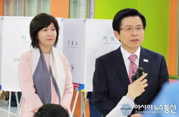 | 황교안 대통령 권한대행이 9일 오전 8시 15분 세종시 도담동 제6투표소가 마련돼 있는 연세초등학교에서 제19대 대통령선거 투표를 마치고 기자들과 인터뷰를 하고 있다./아시아뉴스통신=홍근진 기자 |